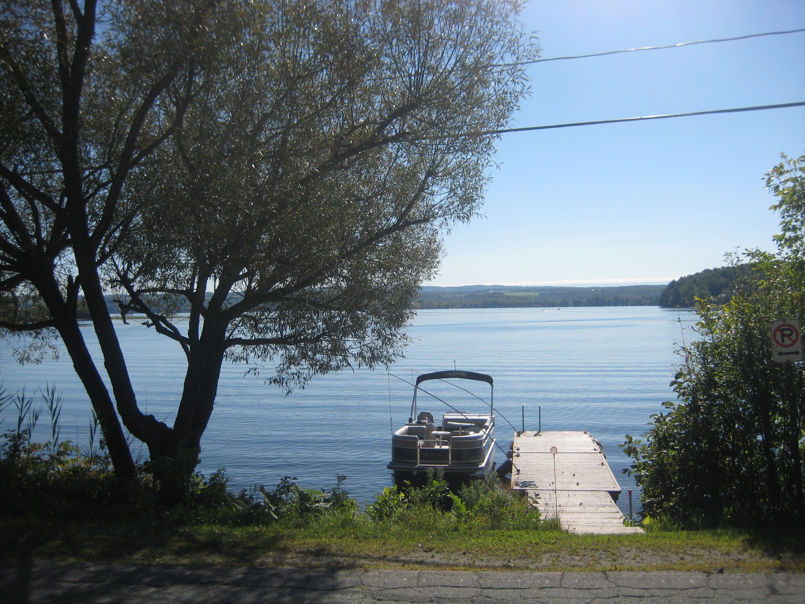Les paysages sont très agréables, avec plusieurs fermes (... et leurs odeurs), des champs, des arbres, et le magnifique Lac Massawippi qui resplendit sous les rayons du soleil. Je dois admettre que niveau mental, j'ai un peu de difficulté après environ une heure de course... avec ma fatigue accumulée par le manque de sommeil (en plus d'avoir couru la veille), je ne me concentre pas très bien, je trouve le parcours un peu long, surtout que mon estomac me donne pas mal de problèmes et je sais que je devrai monter énormément de côtes au retour. Je sais très bien que le moral joue un facteur primordial en course à pied et je fais mon possible pour rester positif. Je pense entre autres à mon ami Marc-André, une véritable inspiration, qui vient de compléter son premier triathlon Ironman en 16 heures, lui qui ne savait pas nager et qui s'achetait un vélo de route il y a à peine un an!